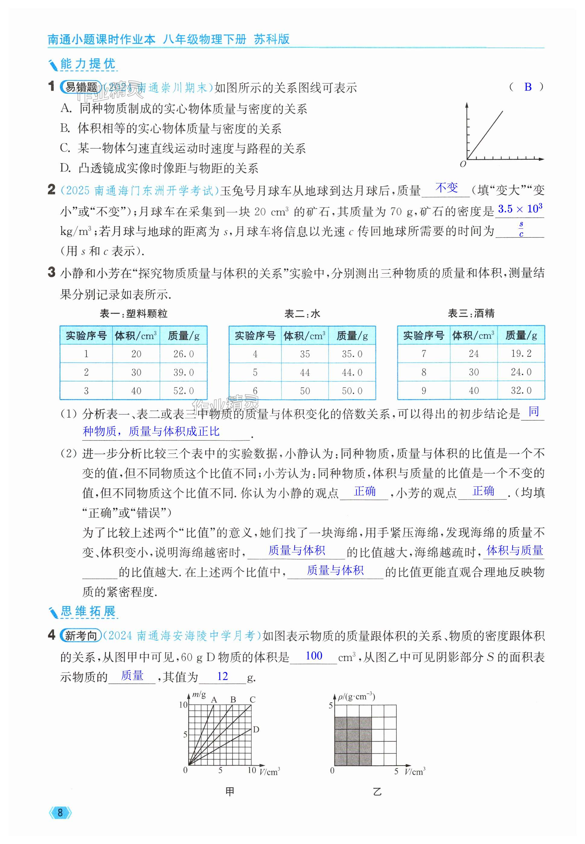 注:目前有些书本章节名称可能整理的还不是很完善,但都是按照顺序排列的,请同学们按照顺序仔细查找。练习册 2025年南通小题课时作业本八年级物理下册苏科版 答案主要是用来给同学们做完题方便对答案用的,请勿直接抄袭。