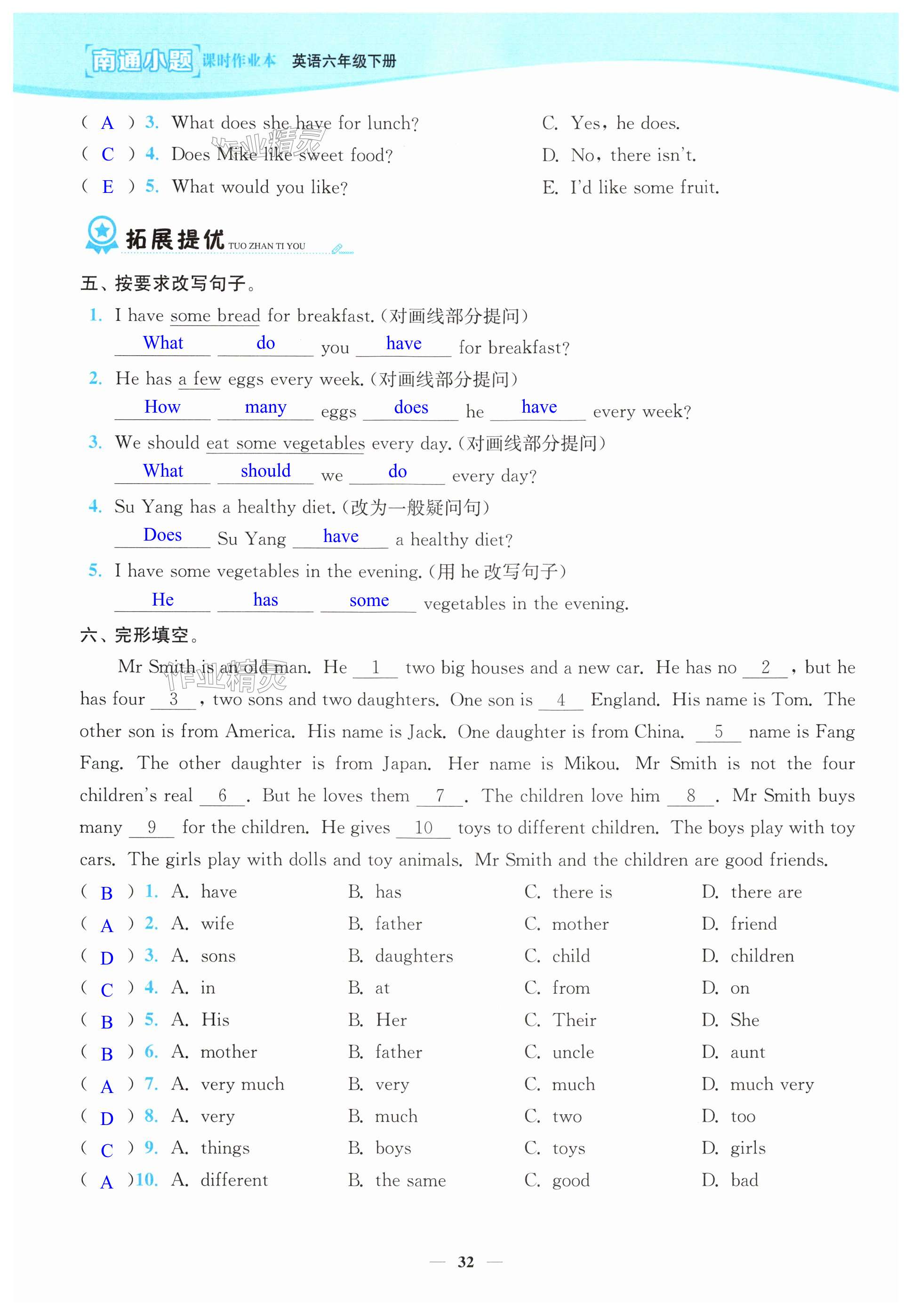 注:目前有些书本章节名称可能整理的还不是很完善,但都是按照顺序排列的,请同学们按照顺序仔细查找。练习册 2025年南通小题课时作业本六年级英语下册译林版 答案主要是用来给同学们做完题方便对答案用的,请勿直接抄袭。