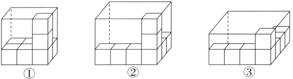 2. 天天分别用8个体积均为1 cm³的小正方体木块测量了如图三个盒子的容积,下面说法正确的是( )。