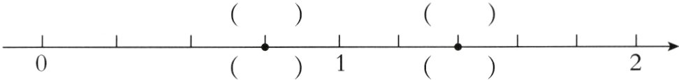 3. 在直线上面的括号里填上适当的分数,在直线下面的括号里填上适当的小数。