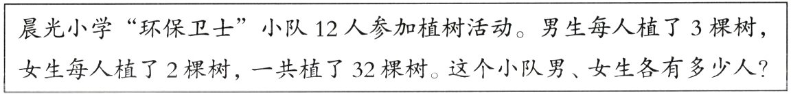 解法一:解:设( )为x。列方程为:3x + 2(12 - x)=32。