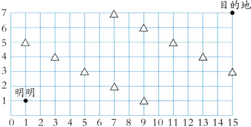 1. 机器人明明怎样沿着图中的方格线绕过障碍物△到达目的地?