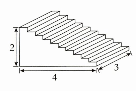 荣德小学准备在一楼的楼梯台阶上铺地毯(如图),你能计算出最少需要多少平方米地毯吗? (单位:米)