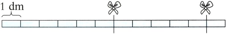 (2) 如图,天天先剪下5dm长的一段作为三角形的一条边,接下来应再在哪里剪开,得到的三段竹条能围成三角形?请在图中画“”表示剪的位置。 (4分)