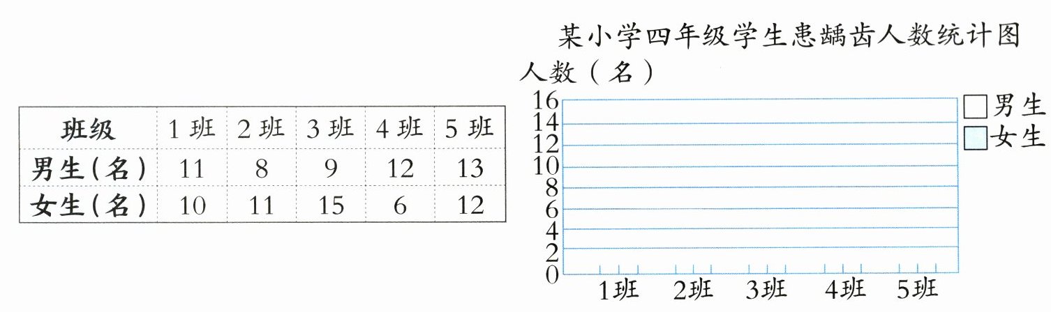 5.下面是某小学四年级学生口腔检查中患龋齿人数统计表。