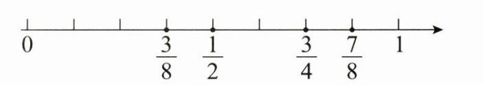 3.用直线上的点表示分数$\frac{1}{2}$、$\frac{3}{4}$、$\frac{3}{8}$、$\frac{7}{8}$。 (4分)