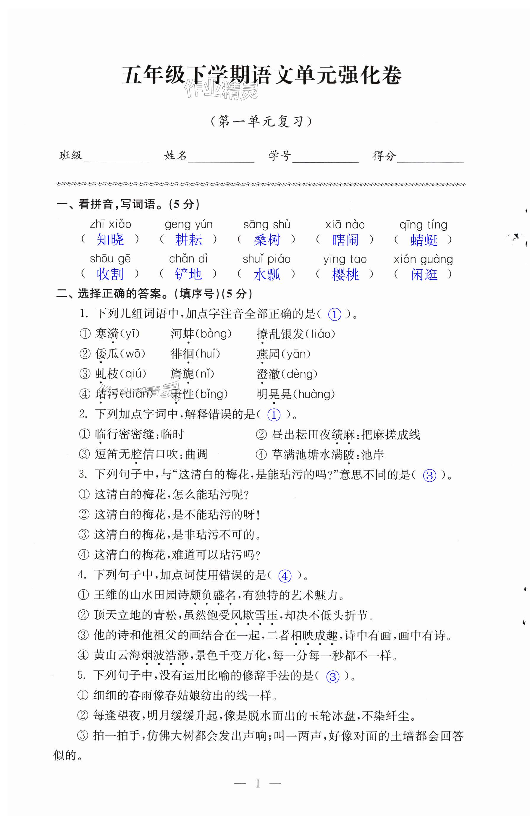 注:目前有些书本章节名称可能整理的还不是很完善,但都是按照顺序排列的,请同学们按照顺序仔细查找。练习册 2025年强化拓展卷五年级语文下册人教版提优版 答案主要是用来给同学们做完题方便对答案用的,请勿直接抄袭。
