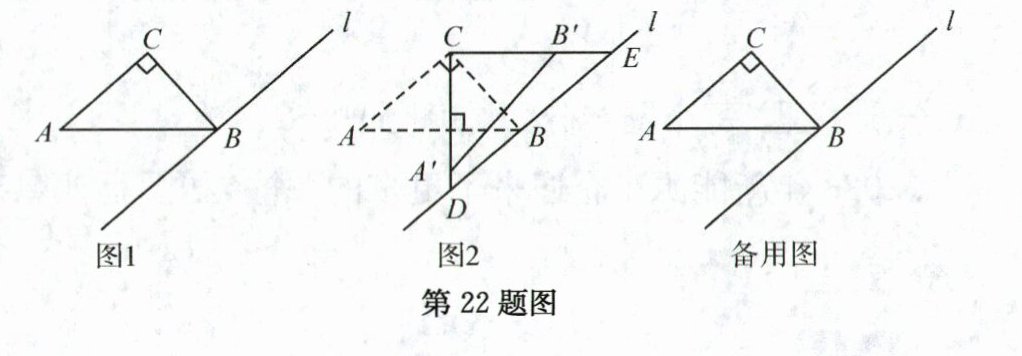 22. (12分)在$Rt\triangle ABC$中,$\angle ACB = 90^{\circ}$,$AC = 2$,$BC=\sqrt{3}$,过点$B$作直线$l// AC$,将$\triangle ABC$绕点$C$逆时针旋转得到$\triangle A'B'C$,直线$CA'$,$CB'$分别交直线$l$于点$D$,$E$.