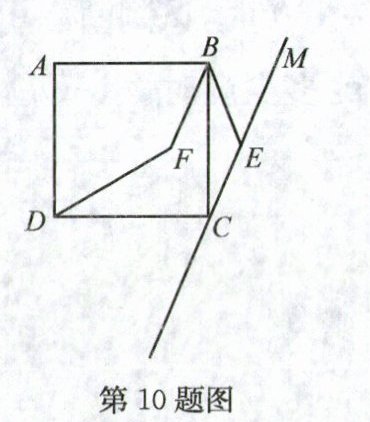 10. 如图,正方形ABCD的边长为4,∠BCM = 30°,点E是直线CM上一个动点,连接BE,线段BE绕点B顺时针旋转45°得到BF,连接DF,则线段DF长度的最小值等于 ( )
