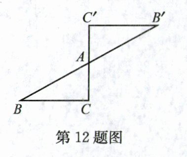 12. 如图是一个中心对称图形,A为对称中心,若∠C = 90°,∠B = 30°,AC = 1,则BB′的长为______.