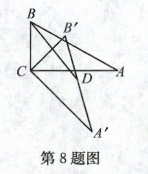 8. 如图,在Rt△ABC中,∠ACB = 90°,将△ABC绕顶点C顺时针旋转得到△A′B′C,D是A′B′的中点,连接BD,若BC = 2,∠ABC = 60°,则线段BD的最大值为 ( )