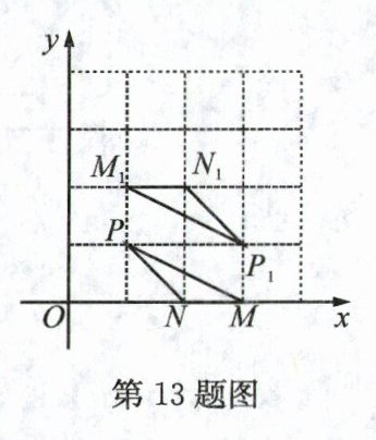 13. 在平面直角坐标系中,点P(1,1),N(2,0),△MNP和△M₁N₁P₁的顶点都在格点上,△MNP与△M₁N₁P₁关于某一点成中心对称,则对称中心的坐标为______.