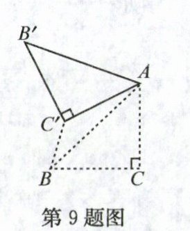 9. 如图,已知△ABC中,∠C = 90°,AC = BC = 2√2,将△ABC绕点A顺时针方向旋转60°到△AB′C′的位置,连接C′B,则C′B的长为 ( )
