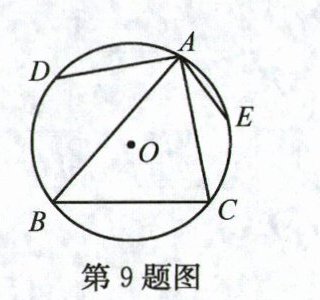 9. 如图,锐角△ABC内接于⊙O,点D,E分别是$\overset{\frown}{AB}$,$\overset{\frown}{AC}$的中点,设∠BAC=α,∠DAE=β,则 ( )