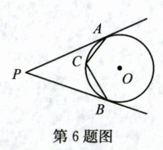 6. 如图,PA,PB分别与⊙O相切于A,B两点,点C为⊙O上一点,连接AC,BC,若∠P = 50°, ∠ACB的度数为( )