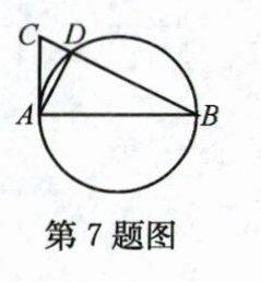 7. 如图,在△ABC中,AB = 2,AC = 1,以AB为直径的圆与AC相切,与边BC交于点D,则AD的长为( )