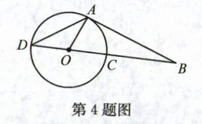 4. 如图,AB为⊙O的切线,切点为A,连接AO,BO,BO与⊙O交于点C,延长BO与⊙O交于另一点D,连接AD. 若∠ABO = 36°,则∠ADC的度数为( )