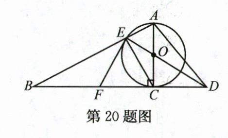 20. (10分)如图,以Rt△ABC的AC边为直径作⊙O,交斜边AB于点E,连接EO并延长,交BC的延长线于点D,点F为BC的中点,连接EF.