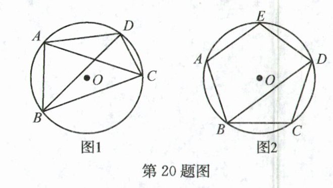 (2)如图2,正五边形ABCDE内接于⊙O,AB=2,求对角线BD的长.