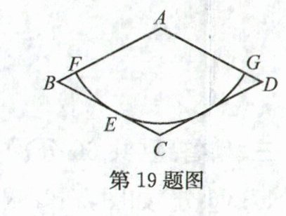 19. (10分)如图,纸片ABCD是一个菱形,其边长为2,∠BAD=120°. 以点A为圆心的扇形与边BC相切于点E,与AB,AD分别相交于点F,G.