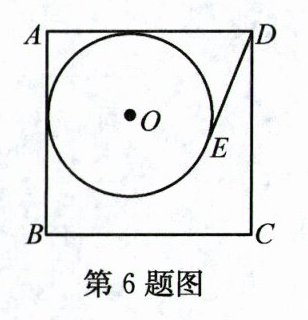 6. 如图,$\odot O$ 与正方形 $ABCD$ 的两边 $AB,AD$ 相切,且 $DE$ 与 $\odot O$ 相切于点 $E$. 若 $\odot O$ 的半径为5,且 $AB = 11$,则 $DE$ 的长度为( )