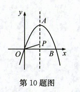 10. 如图,在平面直角坐标系中,抛物线 $y = -x^{2}+2\sqrt{3}x$ 的顶点为 $A$ 点,且与 $x$ 轴的正半轴交于点 $B$,$P$ 点为该抛物线对称轴上一点,则 $OP+\frac{1}{2}AP$ 的最小值为( )