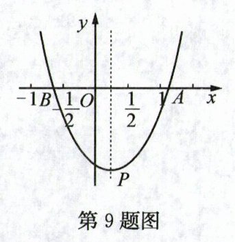 9. 如图,抛物线 $y = ax^{2}+bx + c(a,b,c$ 是常数,$a\neq0)$ 与 $x$ 轴交于 $A,B$ 两点,顶点 $P(m,n)$,给出下列结论: