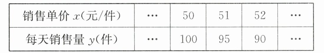 23. (12分)某商家代理经销某种商品,以每件40元的价格批发购进该商品915件,经走访市场发现:每天的销售量 $y$(件)和销售单价 $x$之间的一次函数关系如下表($x\geqslant50$的整数).