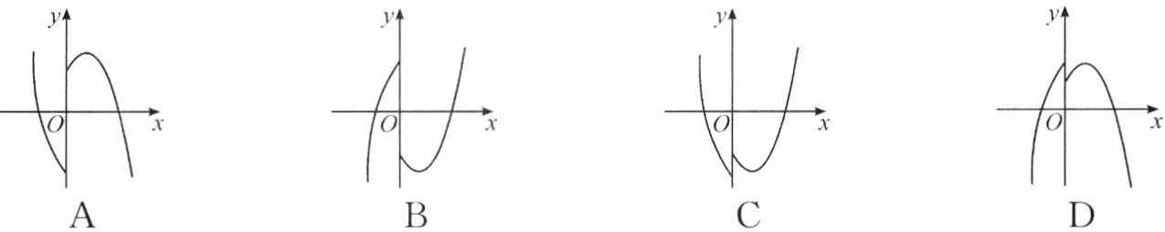 $9. 在平面直角坐标系中,对于点P(x,y)和Q(x,y'),给出如下定义:若y'=\begin{cases}y + 1(x≥0),\\-y(x<0),\end{cases}则称点Q为点P的“亲密点”.例如:点(1,2)的“亲密点”为点(1,3),点(-1,3)的“亲密点”为点(-1,-3).若点P在函数y=x^{2}-2x - 3的图象上,则其“亲密点”Q的纵坐标y'关于x的函数图象大致正确的是( ).$