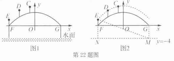 ∵救生圈悬挂点距离抛物线拱面上方1m,