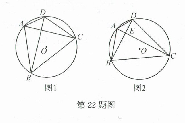 (2) 如图2,已知四边形ABCD内接于⊙O,对角线交于点E.若$\overset{\frown}{AD}+\overset{\frown}{BC}\stackrel{m}{=}180°$.