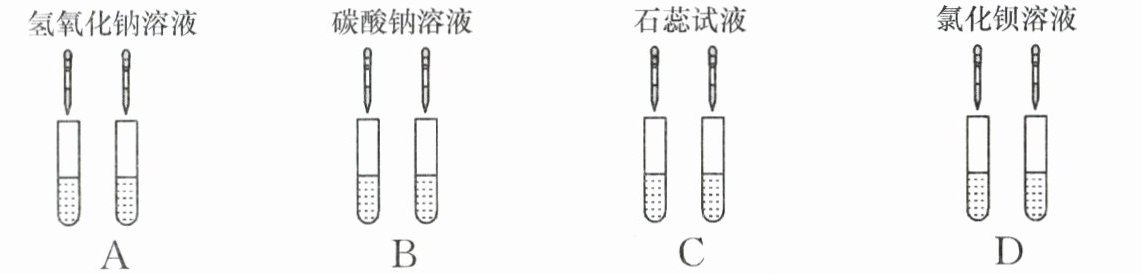 5. 为区别稀盐酸和稀硫酸,小强同学设计如图所示的实验方案:在每组的两支试管中分别盛放稀盐酸和稀硫酸;向同组的两支试管各滴加同种试剂。其中能达到实验目的的是 ( )