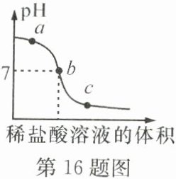 16. 向氢氧化钠溶液中不断滴入盐酸(每点反应都很充分),得到如图的曲线,下列有关判断不正确的是( )