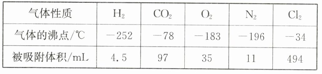 37. (5分)下表中列出了一定温度和压强下每立方厘米活性炭所能吸附的常见气体的体积,分析表中数据与气体的组成、性质的关系,你认为下列结论正确的是 ( )