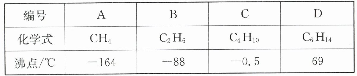 C 解析:该物质常温下是气体且易液化。可以根据物质的沸点进行判断,气体的沸点越高,越容易液化,沸点越低,越难液化。