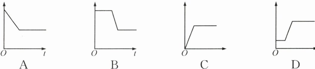 6. 实验室用加热$KClO_{3}$和$MnO_{2}$的混合物制取$O_{2}$。在这一过程中,$MnO_{2}$在固体混合物中的质量分数变化情况与时间$(t)$的关系正确的是 ( )