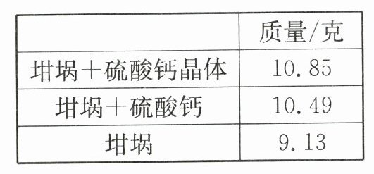 根据表中数据可得,硫酸钙晶体的质量为1.72g,含有的结晶水的质量为0.36g,硫酸钙晶体的相对分子质量为136 + 18X,水的相对分子质量为18。所以可以得到$\frac{136 + 18X}{18X}=\frac{1.72\ g}{0.36\ g}$,X = 2。
