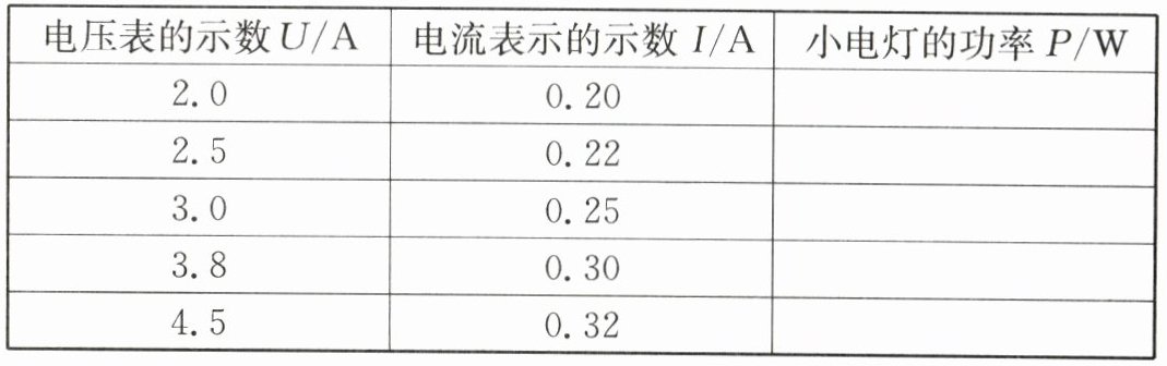 (3)小明同学按电路图正确连接电路后,闭合开关,从大到小调节滑动变阻器的阻值,并将正确操作下的电压表和电流表的示数填入下表。