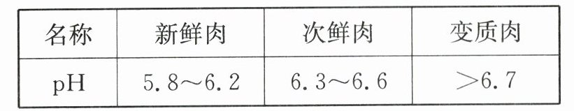 5. 有资料显示,肉类新鲜程度的变化会引起pH发生相应变化,变化关系如下表: