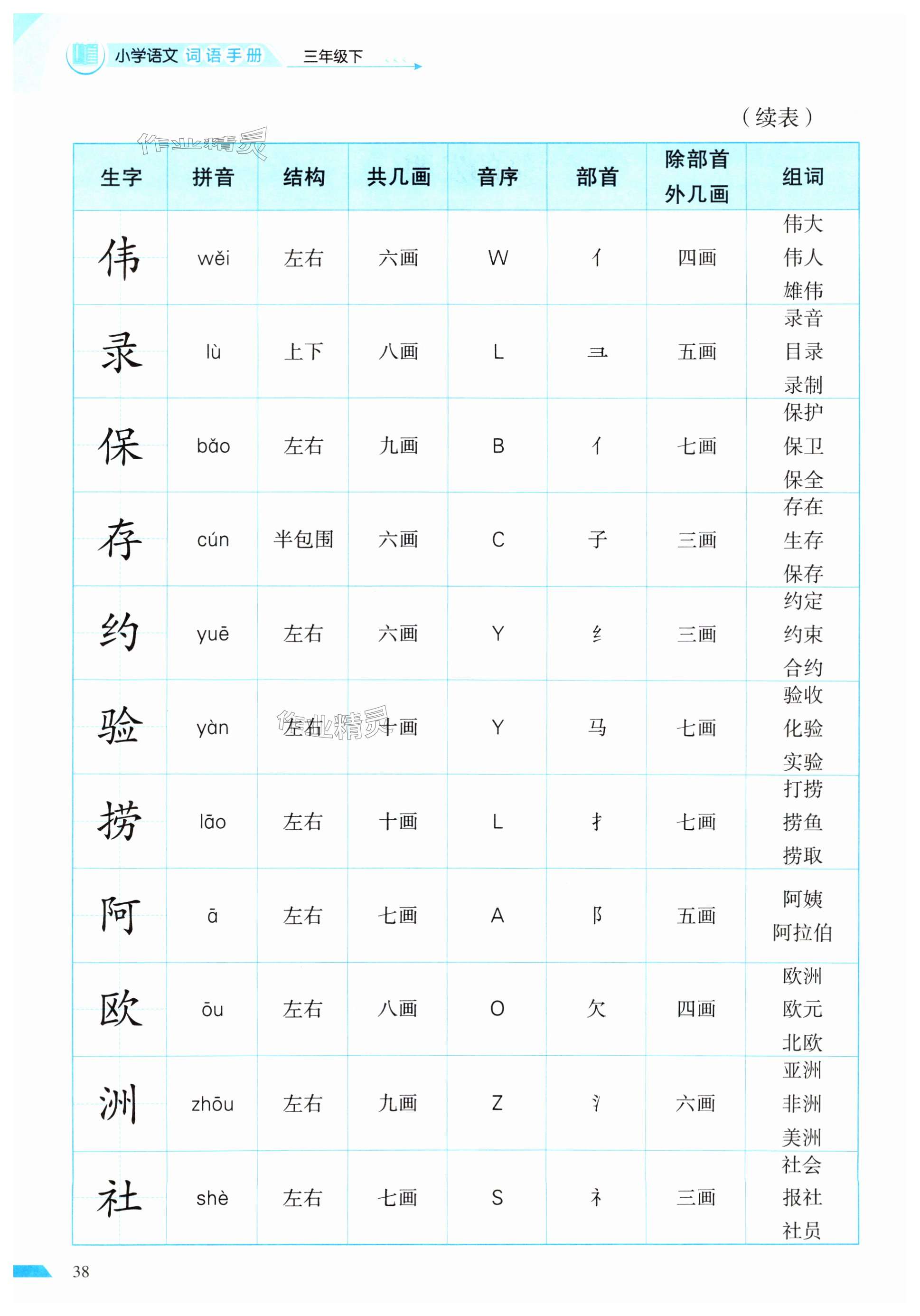 2025年小学语文词语手册三年级下册人教版开明出版社