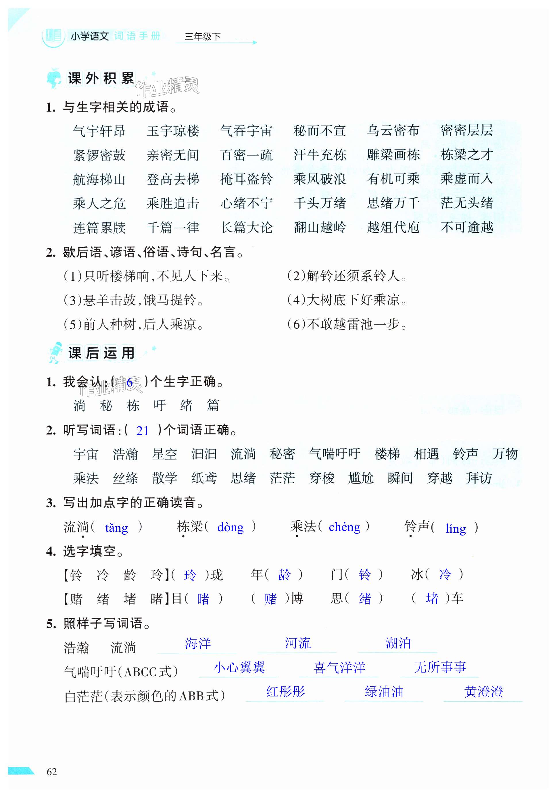注:目前有些书本章节名称可能整理的还不是很完善,但都是按照顺序排列的,请同学们按照顺序仔细查找。练习册 2025年小学语文词语手册三年级下册人教版开明出版社 答案主要是用来给同学们做完题方便对答案用的,请勿直接抄袭。