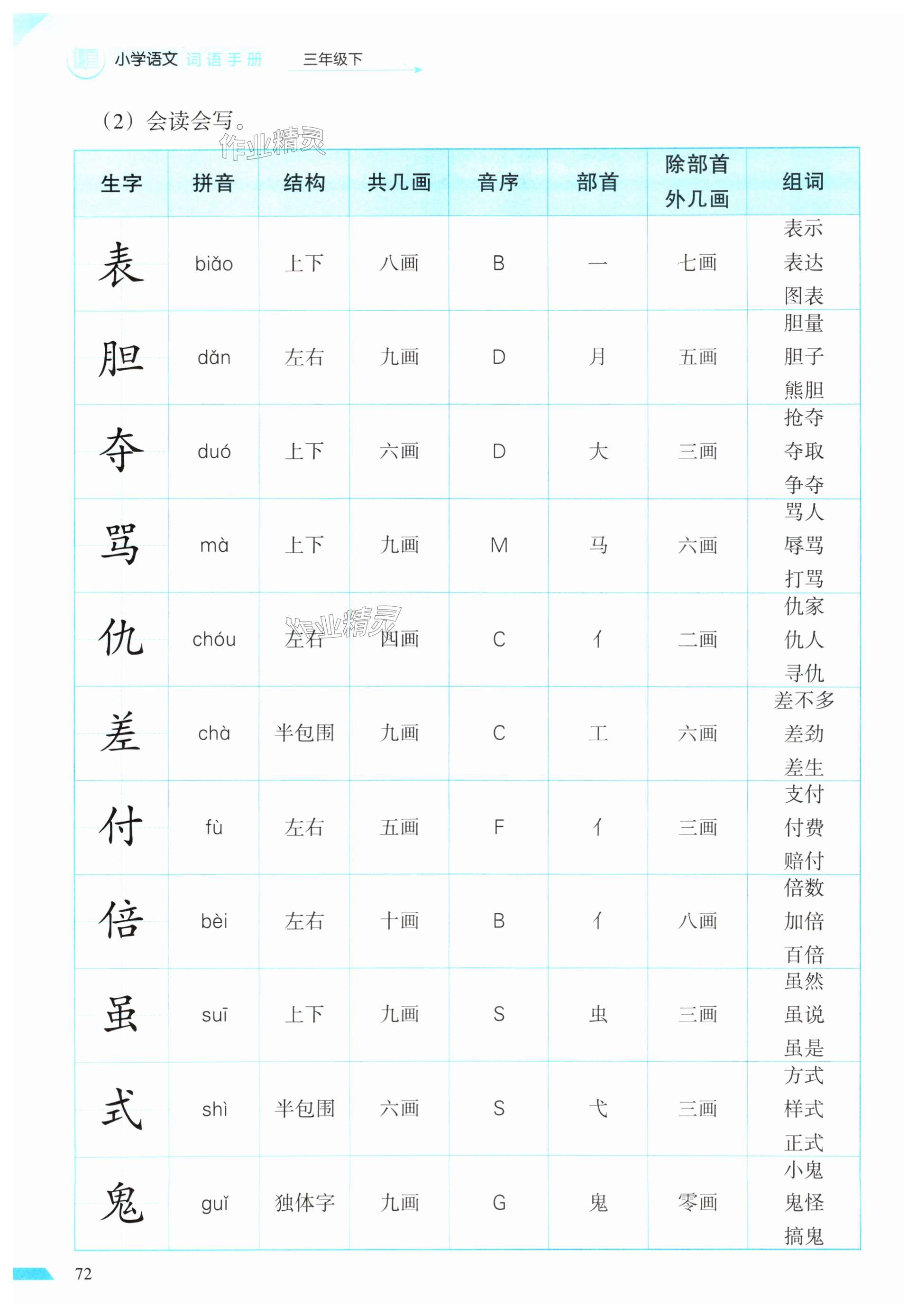 注:目前有些书本章节名称可能整理的还不是很完善,但都是按照顺序排列的,请同学们按照顺序仔细查找。练习册 2025年小学语文词语手册三年级下册人教版开明出版社 答案主要是用来给同学们做完题方便对答案用的,请勿直接抄袭。