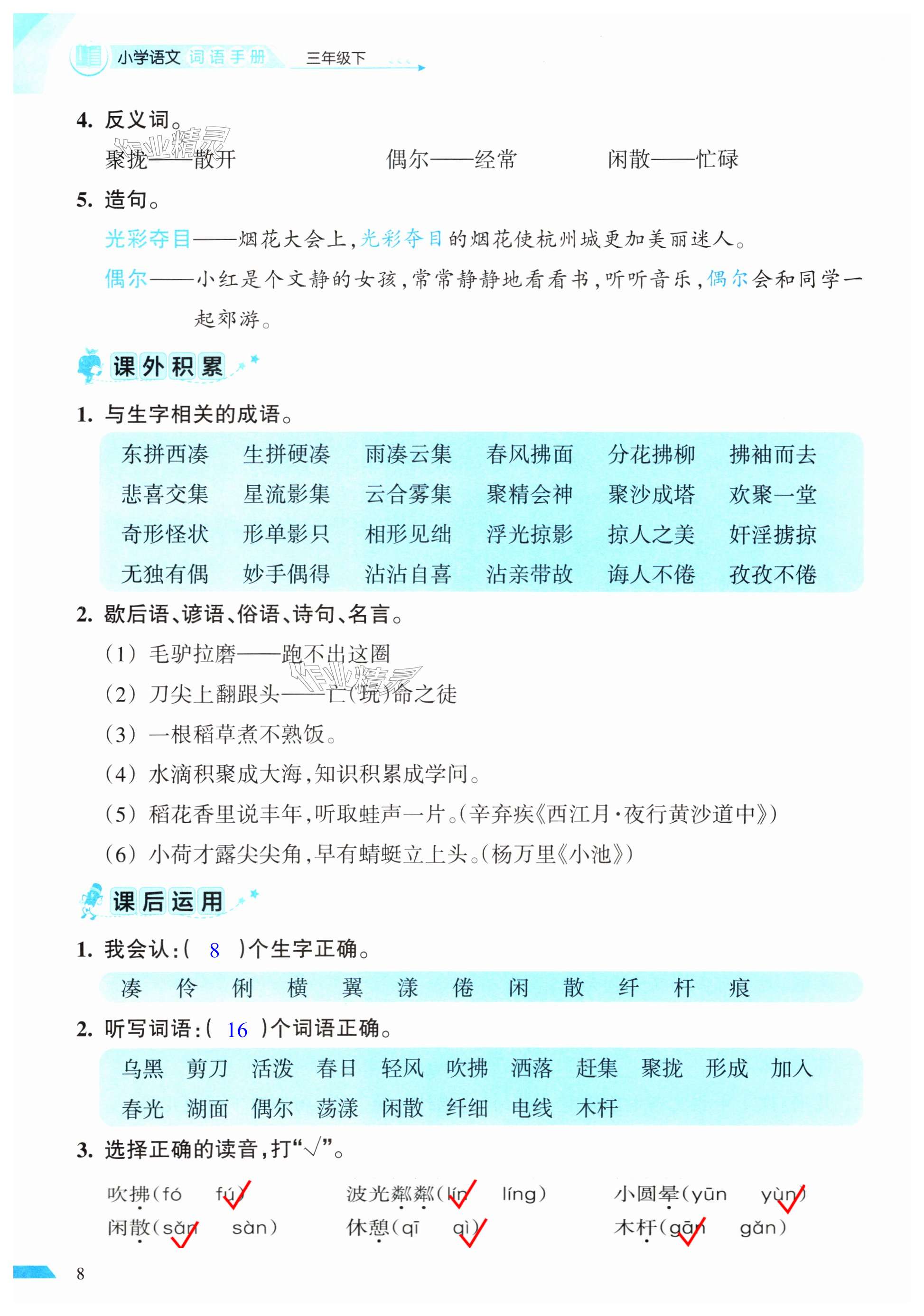 2025年小学语文词语手册三年级下册人教版开明出版社