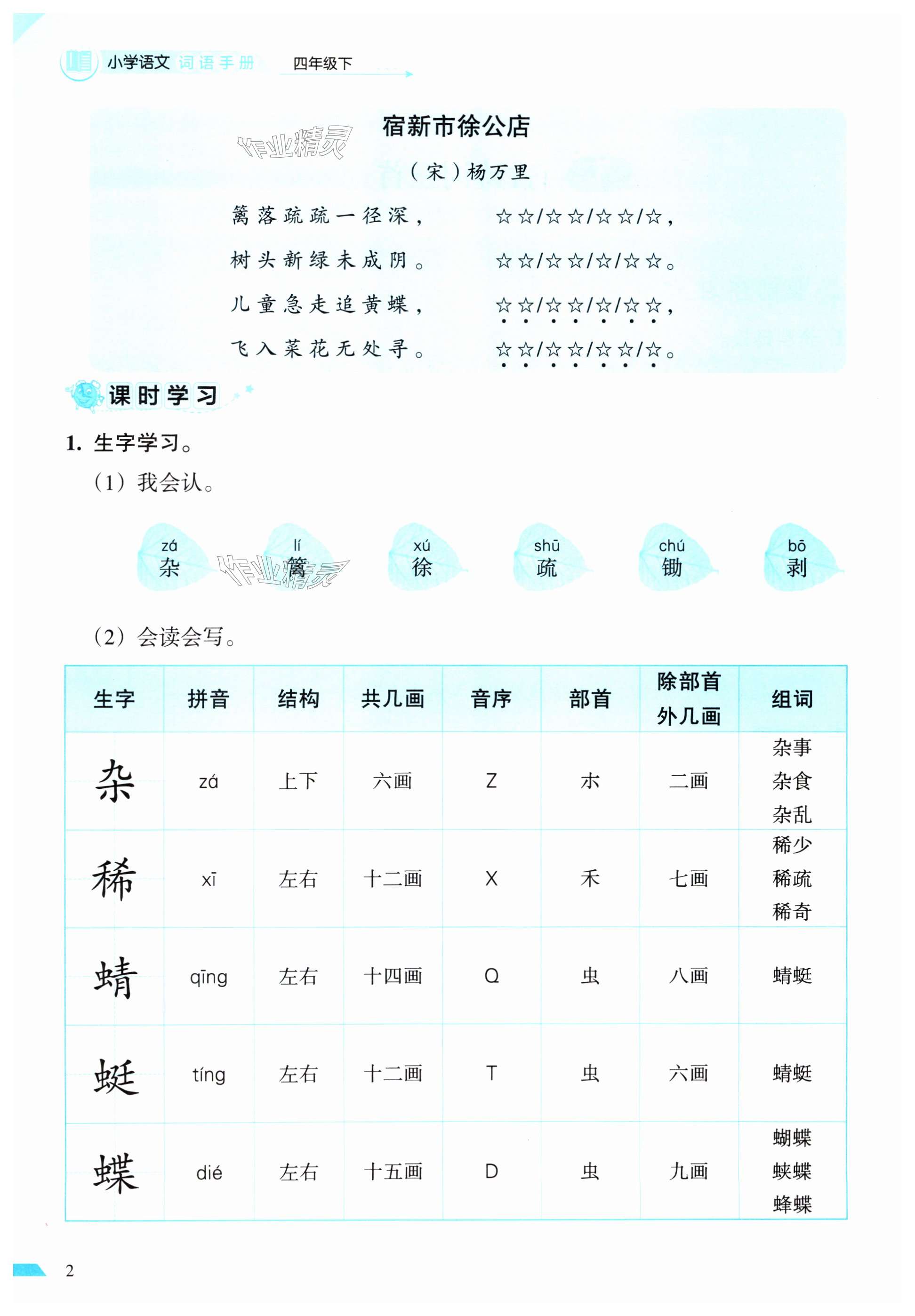 2025年小学语文词语手册四年级下册人教版开明出版社