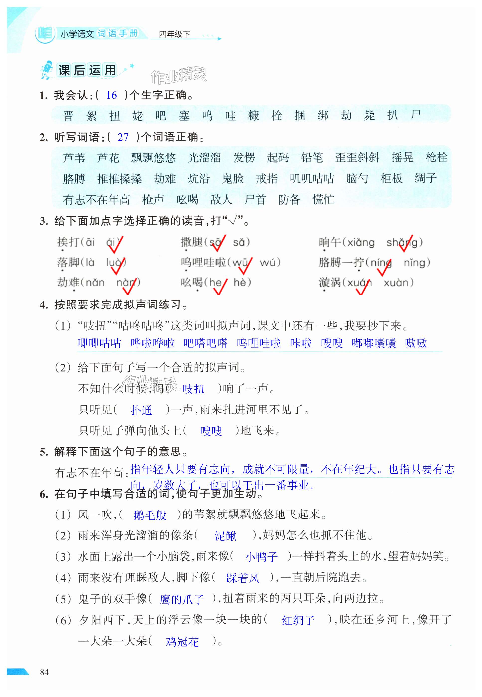 注:目前有些书本章节名称可能整理的还不是很完善,但都是按照顺序排列的,请同学们按照顺序仔细查找。练习册 2025年小学语文词语手册四年级下册人教版开明出版社 答案主要是用来给同学们做完题方便对答案用的,请勿直接抄袭。