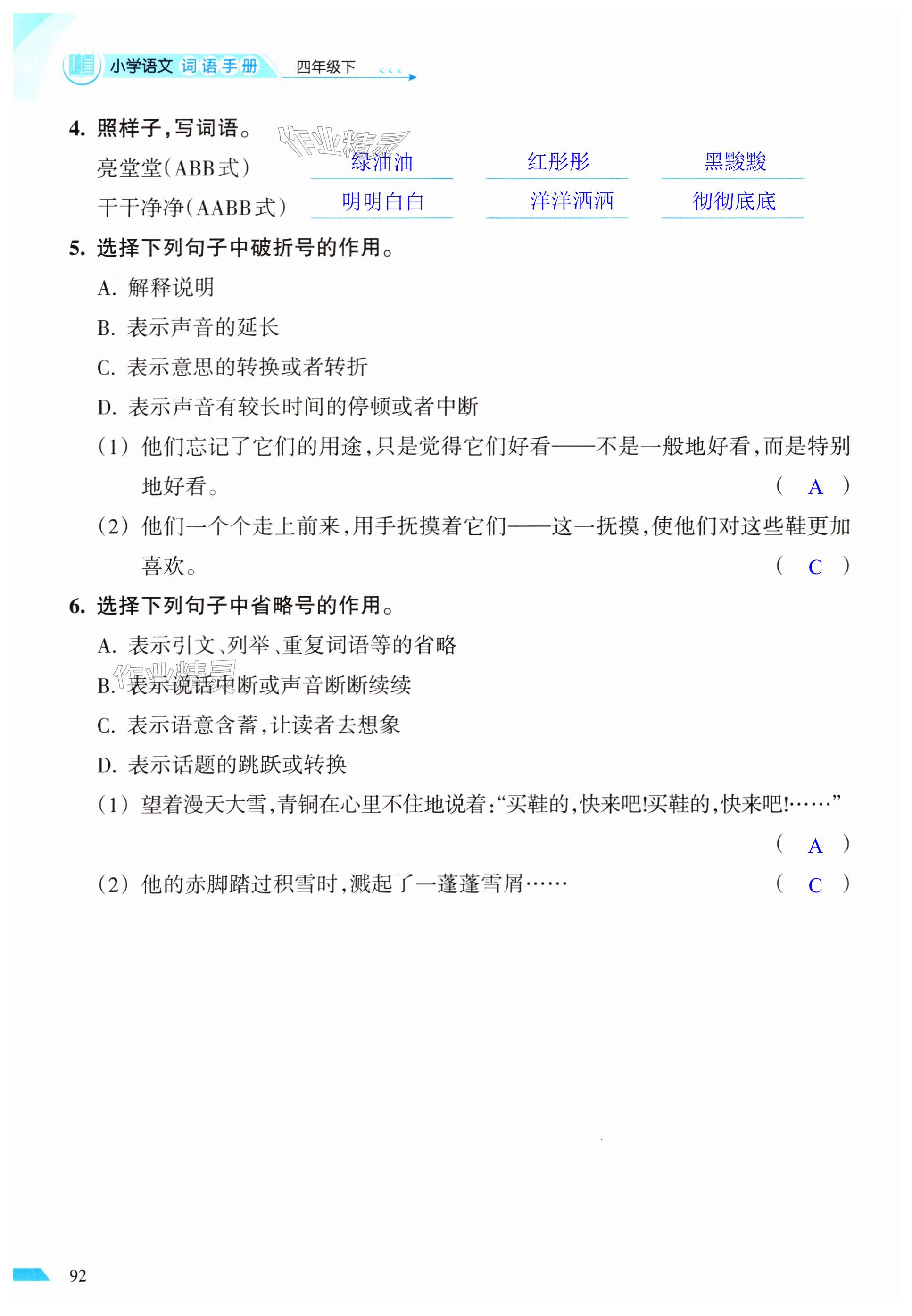 注:目前有些书本章节名称可能整理的还不是很完善,但都是按照顺序排列的,请同学们按照顺序仔细查找。练习册 2025年小学语文词语手册四年级下册人教版开明出版社 答案主要是用来给同学们做完题方便对答案用的,请勿直接抄袭。