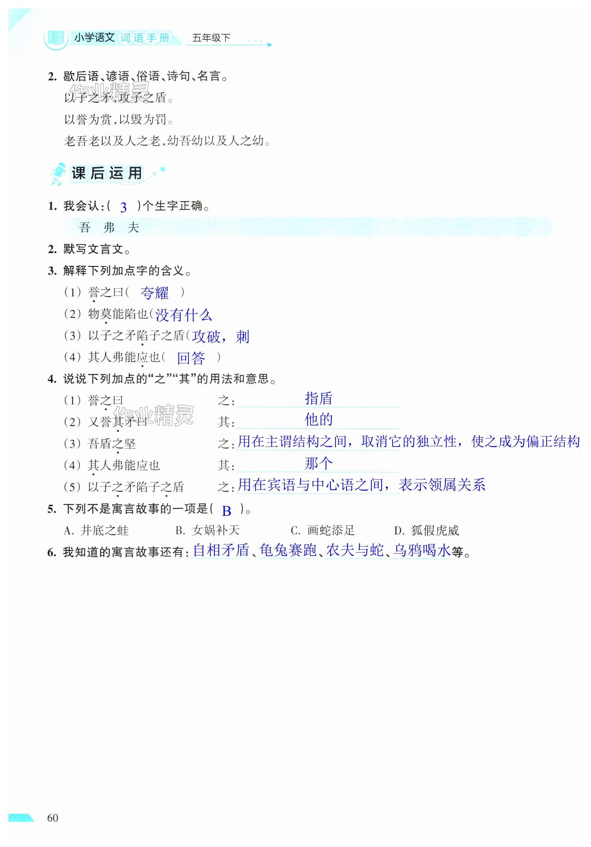 注:目前有些书本章节名称可能整理的还不是很完善,但都是按照顺序排列的,请同学们按照顺序仔细查找。练习册 2025年小学语文词语手册五年级下册人教版开明出版社 答案主要是用来给同学们做完题方便对答案用的,请勿直接抄袭。