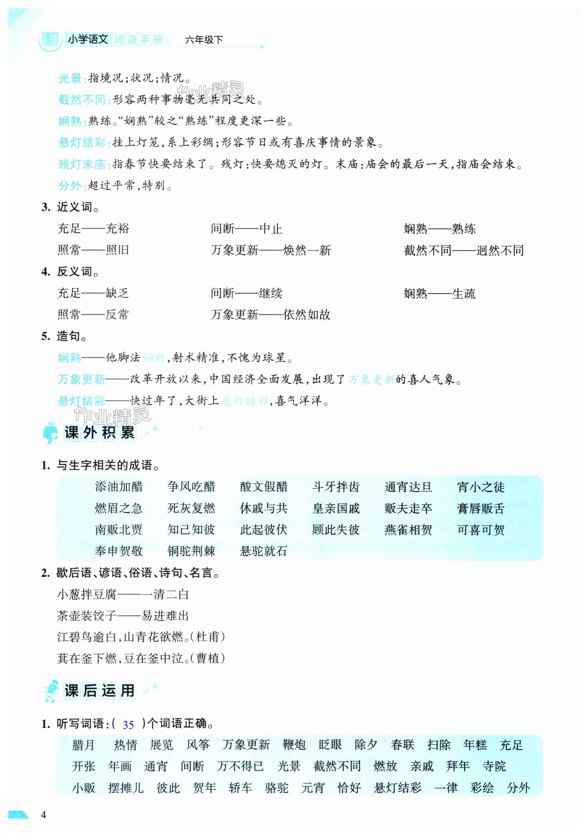 2025年小学语文词语手册六年级下册人教版开明出版社