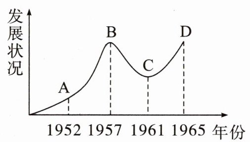 2. 下图反映的是新中国在20世纪五六十年代的农业发展状况,出现图中B点到C点这一变化的主要原因是 ( )