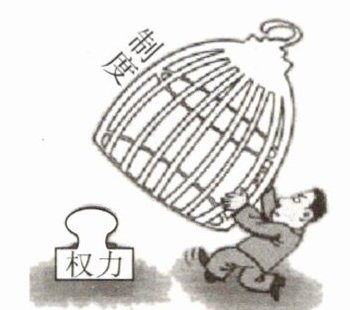 ①漫画中公章代表权力,笼子代表制度,说明要将权力关进制度的笼子